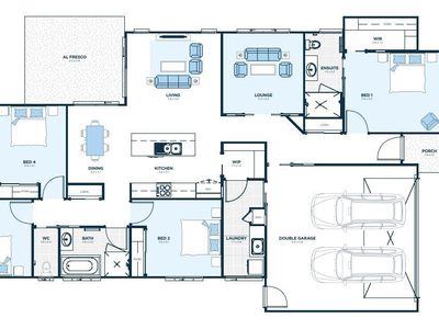 * Open plan Living Dining area opens through glass sliding doors to outdoor alfresco