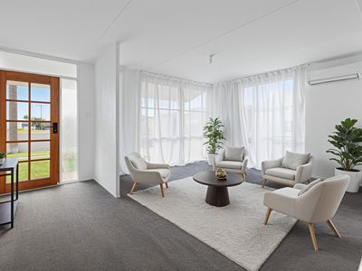 Inside, the home offers a warm and welcoming feel, with thoughtful updates throughout. The renovated kitchen and dining area is both functional and stylish, featuring new benchtops, overhead cupboards, a brand-new dishwasher and eye-catching Spanish tiles that add character and charm. The open-plan lounge creates a relaxed living space and is fitted with a split-system, ensuring year-round comfort.