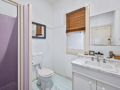 Original timber floors flow down the hallway to the 3 bedrooms with the master and second bedroom king in size, enjoy lovely corner windows creating a bright and private retreat. The third bedroom includes built-in robes and would make an ideal home office or guest room, while still comfortably accommodating a double bed.