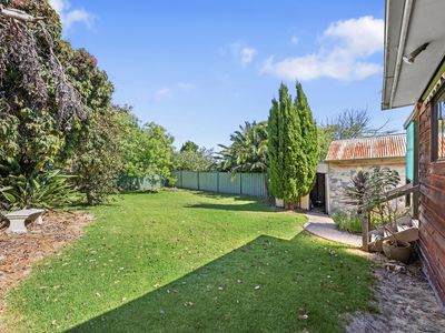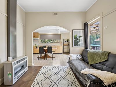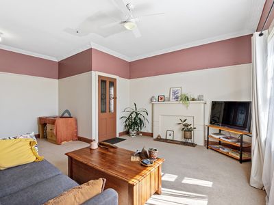 Tucked away behind mature trees and secure fencing, the home sits proudly on hardwood stumps and enjoys a wonderful sense of privacy. An expansive hallway sets the tone and leads you through to the stunning front living room - a truly gorgeous space showcasing high ceilings, picture rails, large sun-filled windows, a beautiful stained-glass door, and the original chimney and mantel, just waiting to be restored to its former glory as an open fireplace.