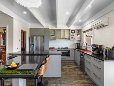 Comfort is assured year-round with ducted heating to the front of the home, two reverse-cycle systems and 2 wood fires.