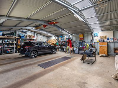 A large 4-car garage with full power and electric roller doors is complemented by a 9m x 12m colorbond shed with a concrete floor, power and two doors with one remote.