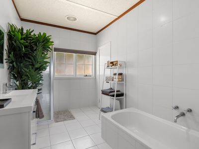 Also featured in this part of the home is the equipped laundry which connects to the main bathroom via a toilet. The bathroom is spacious with a bath and a shower, and of course, access to the 2 way toilet.