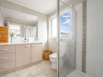 Located in North Portland, this immaculate home features elevated ceiling heights and Caesar Stone benchtops in the kitchen, ensuite and main bathroom, two separate living areas—one perfectly positioned opposite the luxurious king-sized master suite (complete with walk-in robe and a high-end ensuite), and the other flowing into a sun-drenched open-plan kitchen, dining and living area with access to the undercover decking space.