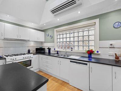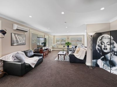 Upstairs offers a fantastic and versatile second living area with family room, kitchenette, bathroom and third bedroom - ideal for guests, teenagers, or extended family. This level also includes reverse-cycle heating, plantation shutters and window length bench - a great place to curl up with a good book.