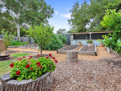 The expansive, enclosed & stunning back yard is what kids dream of!!! PLay hide and seek in the established trees, have tea in the cubby house, search for eggs in the fully enclosed chook yard, or discover hidden fairy gardens. The established and colourful gardens combine to create a private, peaceful oasis and the raised veggie gardens are ready and waiting for your crop.