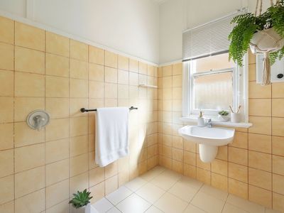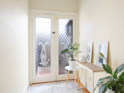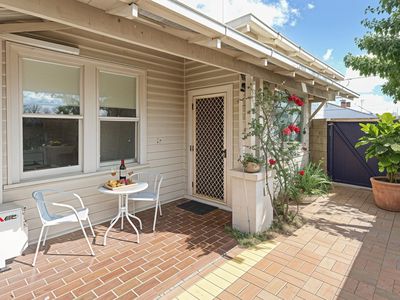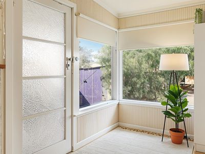 Outside, the property offers an enclosed backyard and a generous garden shed or single garage accessed via a rear laneway and secure gate. At the front, a private verandah with a high wall provides a sunny, sheltered retreat with excellent privacy.
