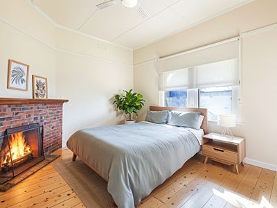 The updated bathroom features modern fittings and finishes, while the spacious laundry includes a separate toilet for convenience. A flexible third bedroom provides versatility and could easily serve as a second living area or cosy sitting room, complete with its own open fireplace.