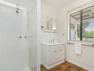 Modern bathroom with separate toilet plus laundry complete the interior of this pretty package.