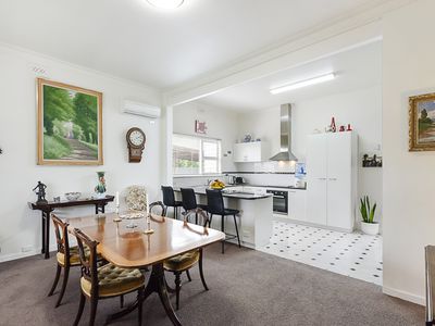 Entering the front door via the verandah complete with bullnose decking, you are welcomed by the open dining and kitchen space - with modern tones yet keeping within the feel of the home, the kitchen has ample bench and cupboard space plus there is a reverse cycle. The formal lounge is spacious and sunlit and includes a new gas heater.