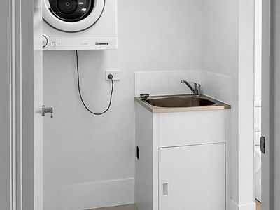 • Contemporary kitchenette with stainless steel Westinghouse appliances