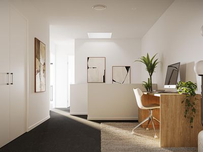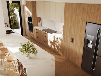 Showcasing contemporary, clean-lined minimalism, the striking black-and-white exterior is beautifully balanced with its surroundings. Inside, high ceilings, timber-look flooring and square-set cornicing across the living areas create a bright, refined finish and a perfect neutral canvas to style your way.